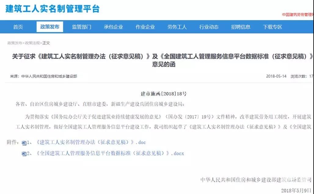《建筑工人實(shí)名制管理辦法(征求意見(jiàn)稿)》